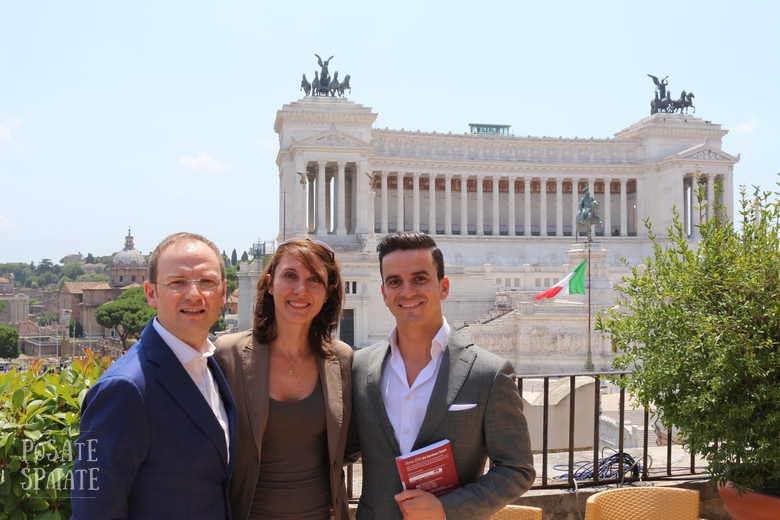 La presentazione della guida è stata organizzata nel Palazzo dell’associazione Civita, in una sala da cui si può godere di una vista meravigliosa su piazza Venezia e sui Fori romani.