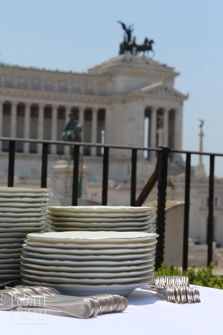 Sulla terrazza della sala è stato servito anche un piccolo pranzo di altissima qualità, accompagnato dai vini piceni: Passerina, Pecorino e il rosso Piceno Superiore che sono stati all’altezza della caldissima giornata romana, con quasi 40°, e del cibo fresco e ricercato.