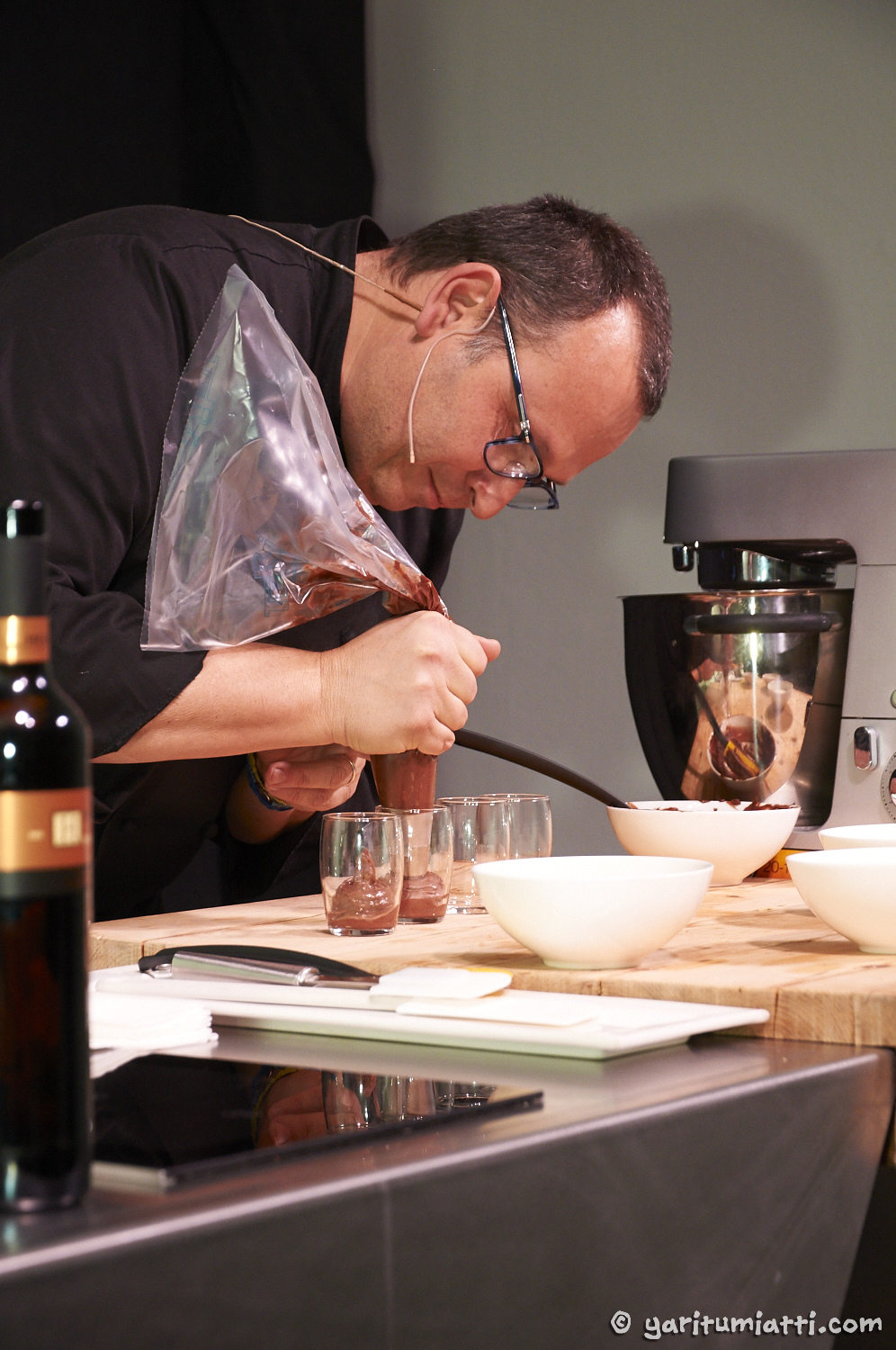 Per concludere, Maurizio Santin si è occupato dell’ultimo tocco di dolcezza con il suo Bicchierino Natalizio con cubetti di panettone, cremoso al cioccolato aromatizzato agli agrumi, crema con mascarpone e panna e croccantini caramellati per completare il sapore e le consistenze. Vino in abbinamento – Hekate Passito 2012 Feudo Arancio con un aroma indimenticabile e un sapore non troppo dolce, perfetto per accompagnare il dessert.