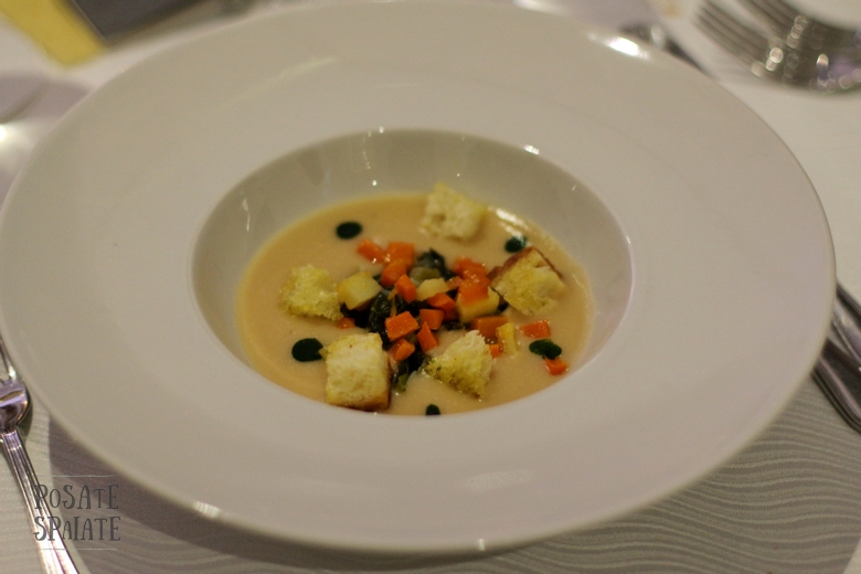 Massimiliano Mariola ha preparato l’antipasto: Uovo su broccolo romanesco con pecorino e carasau. Cremoso, dolce, sapido e croccante. Chi ha paura dell’uovo in camicia? Io! lo temo, e molto, temo il mulinello dentro cui far scivolare le uova una dopo l’altra (…e poi chi le ferma?!) ma di sicuro replicherò l’abbinamento della crema di broccolo romanesco, pecorino e pane carasau. Vino in abbinamento – Alperegis Pas Dosè 2009 Rotari