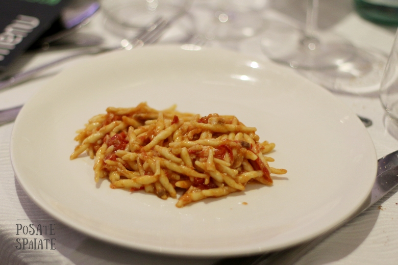 Giorgione, che è ancora più simpatico che in TV, è rimasto sul classico con un piatto di Trofie con pomodori fritti e gallinella. Vino in abbinamento – Assonanza 2013 Castel Firmian, che nasce dall’unione di Chardonnay e Traminer aromatico, che insieme creano l’equilibrio perfetto tra freschezza e l’aroma floreale.