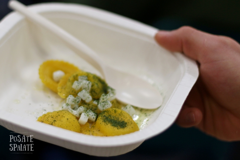 Ma non è finita, il bello è arrivato all’assaggio: dopo la cottura il ripieno del raviolo si scioglie quindi bisogna mangiarlo in un boccone per essere invasi, dopo il primo morso, dalla morbidezza dell’olio al parmigiano. Indimenticabile.