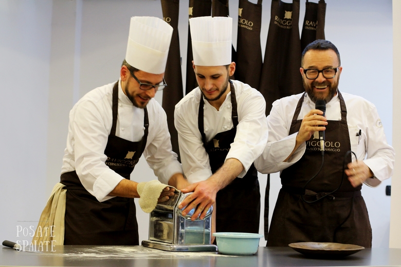 Durante lo show-cooking dedicato ai ristoratori e alla stampa, lo chef Giancarlo Morelli ha ripercorso la storia di come è stata ricostruita la ricetta immaginando le abitudini e i sapori dell’epoca in cui si pensa che il Raviggiolo sia nato.