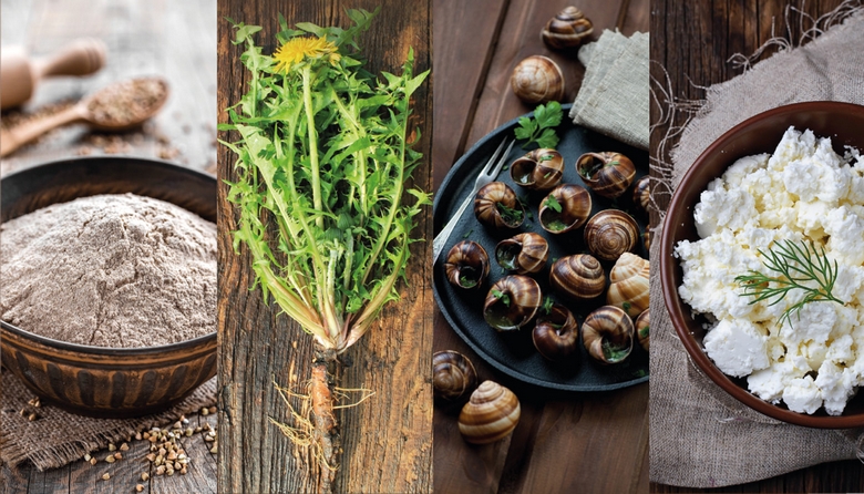 2.Per il ragout, preparare un fondo di burro, aglio e scalogno, aggiungere le lumache tagliate a brunoise e brasarle dolcemente fino a farle asciugare. Bagnare con vino bianco e portare a cottura con brodo vegetale.