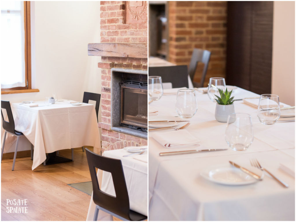 Un ambiente curato e luminoso, elegante ma senza strafare: ci siamo sentiti coccolati e a nostro agio nella sala al primo piano. Mattoni a vista, il camino, il pavimento di legno, il tovagliato e le tende chiare: un equilibrio perfetto che trasmette serenità.