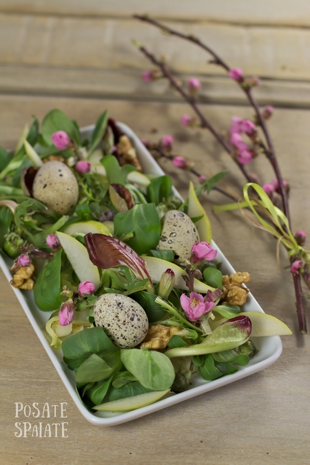 Insalatina di Pasqua con uova di quaglia e i fiori di pesco