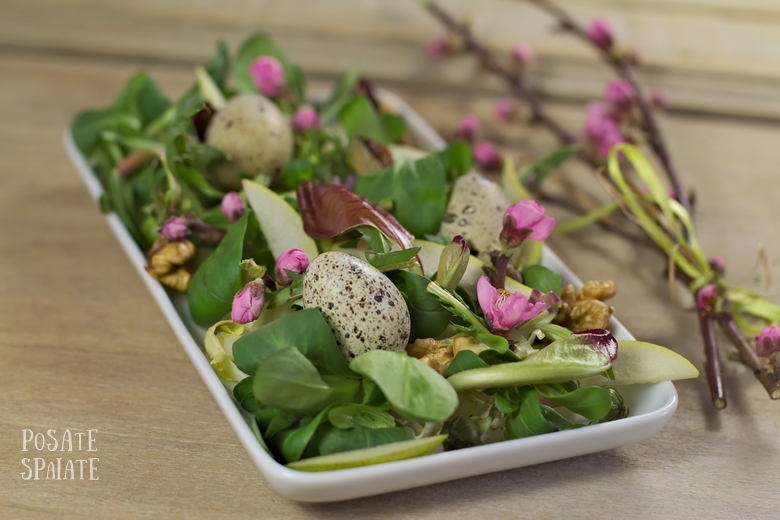 Insalatina di Pasqua con uova di quaglia e fiori di pesco_Posate Spaiate