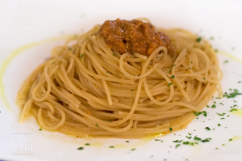 Gli spaghetti con la polpa di ricci e la zuppetta di molluschi e crostacei. Me la sogno ancora la notte.