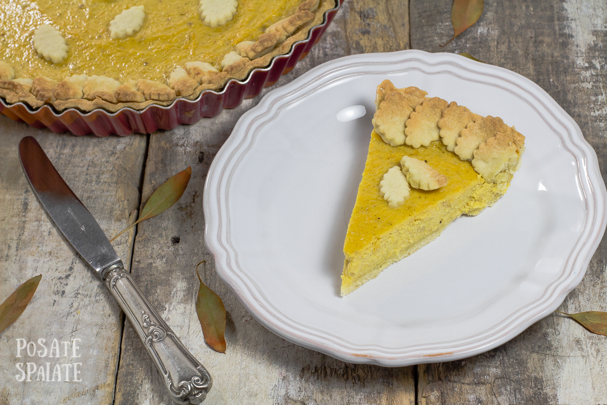 Quel momento dell’anno in cui non si ha altro nella…zucca! Perché la zucca è di stagione e perché ad Halloween va di moda intagliarle e metterle fuori dalla porta con una lanterna per proteggersi da Jack’O’Lantern nel caso passasse di lì la notte tra il 31 Ottobre e il 1 Novembre. Io non ho mai intagliato una zucca ma ne ho tagliate tantissime per fare risotti, vellutate oppure la torta di zucca, che in America è chiamata Pumpkin Pie ed è speciale perché la zucca è naturalmente dolce ed è perfetta abbinata alle spezie.