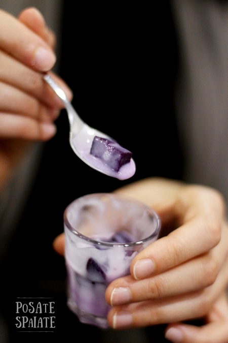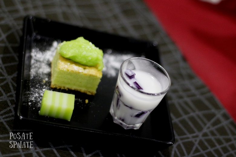 Per dolce abbiamo assaggiato una crema di latte di cocco e patata dolce viola, un pan cake servito con una crema pasticcera aromatizzata al pandano e un quadrotto di farina di riso e pandano che si chiama Settimo cielo perché formato da sette strati alternati con due consistenze diverse. Il Pandano è una pianta perenne tropicale, le cui foglie vengono utilizzate per aromatizzare delicatamente i cibi.