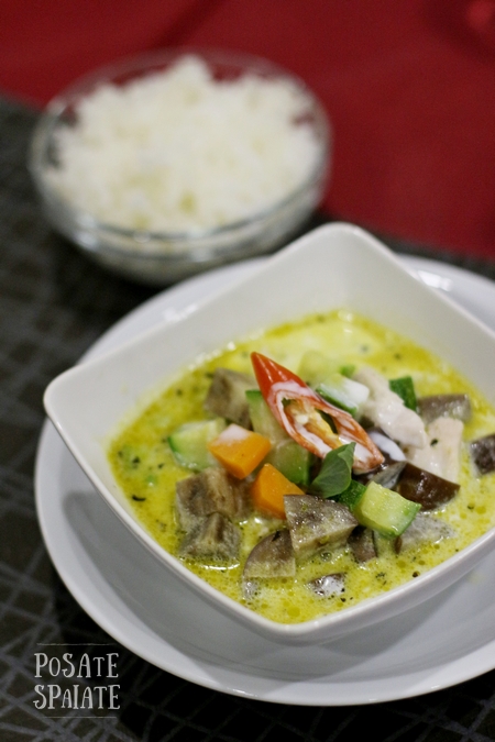 • Ca ry – riso servito con curry verde di pollo e verdure