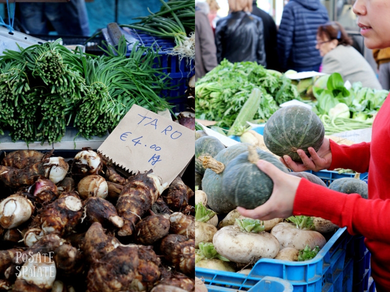 Molti ortaggi sono poco conosciuti in Italia, come il taro, il cetriolo cinese o i fagiolini lunghi e rendono il mercato esotico affiancandosi alle più comuni zucche e alla menta dolce marocchina che arriva quasi tutti i giorni da Marrakech.