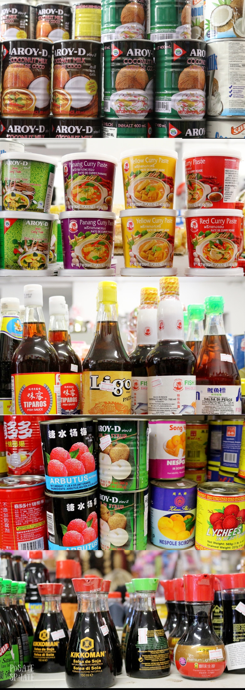 A parte questi alimenti un po’ strani per noi italiani, il negozio cinese offre anche gli ingredienti base per molte preparazioni etniche come la salsa di soya, il latte di cocco, le salse, le paste di curry e i noodles di tutti i tipi e dimensioni.